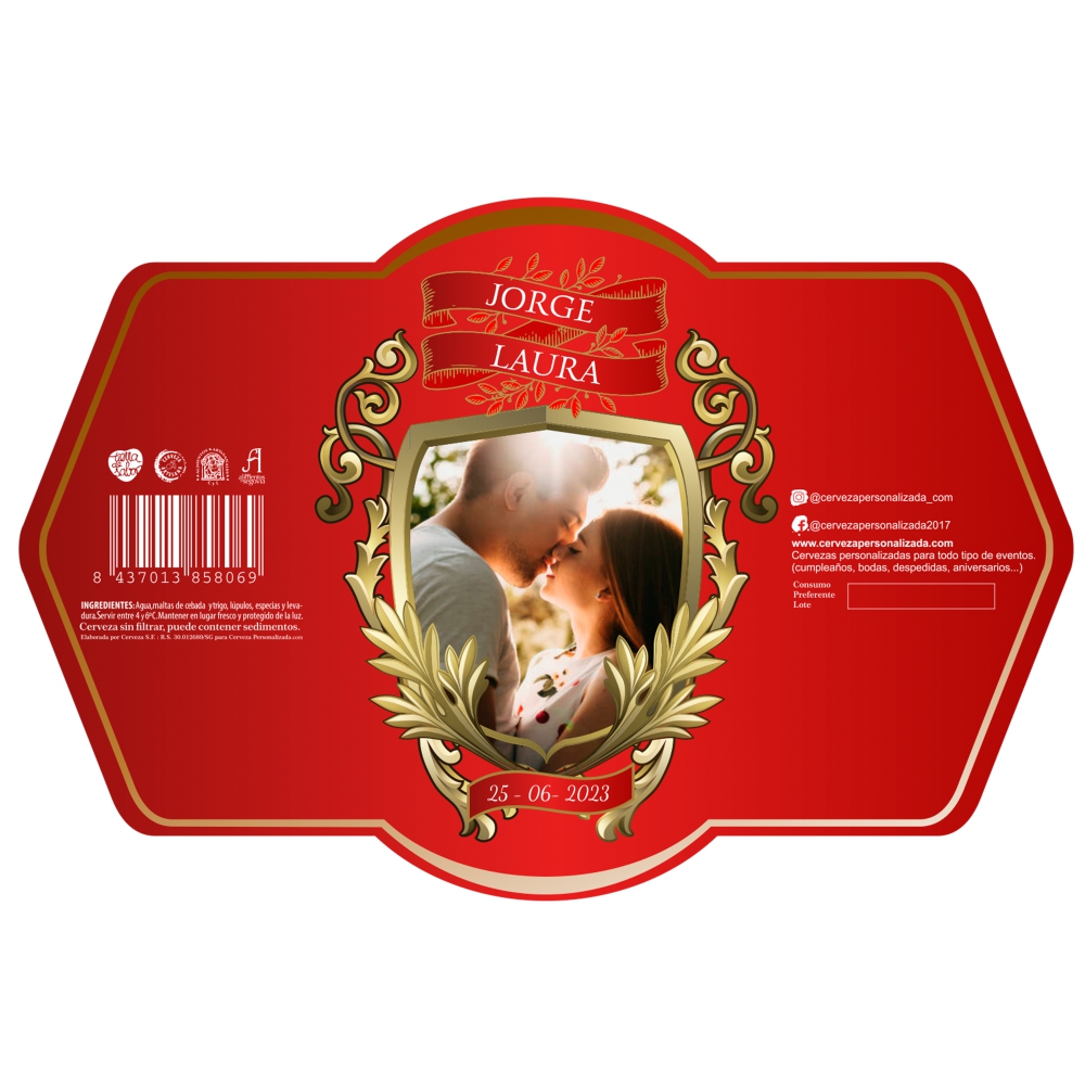 Diseño de etiqueta con la foto que más os guste incrustada en escudo.
