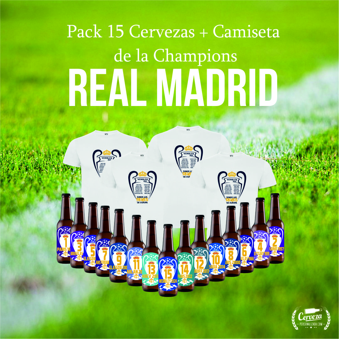 Pack de 15 de cervezas + Camiseta » Real Madrid Wembley 2024″